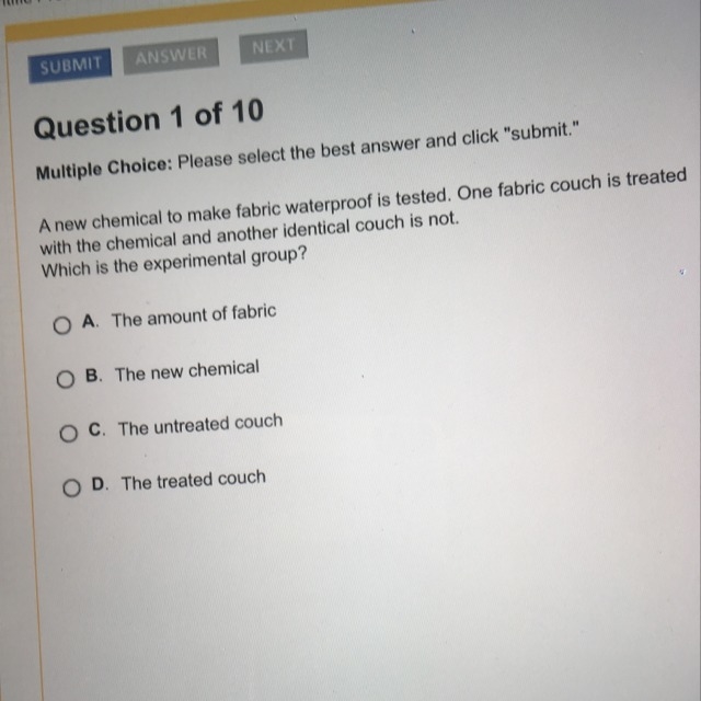 B. The new chemical is what is being added to the experimental group.