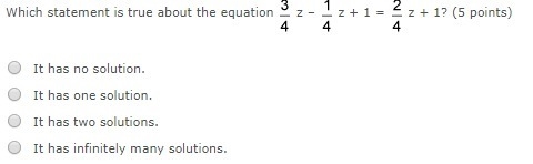 This is D, has infinitely many solutions because any number you enter as z will equal itself.