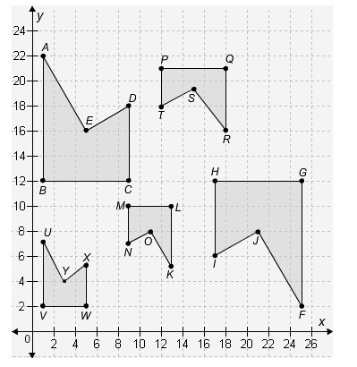 Polygon PQRST cannot be mapped onto the others by similarity transformations.