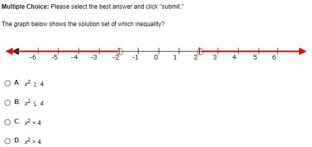 answer is D. x^2 > 4 (on number line, 2 is open)