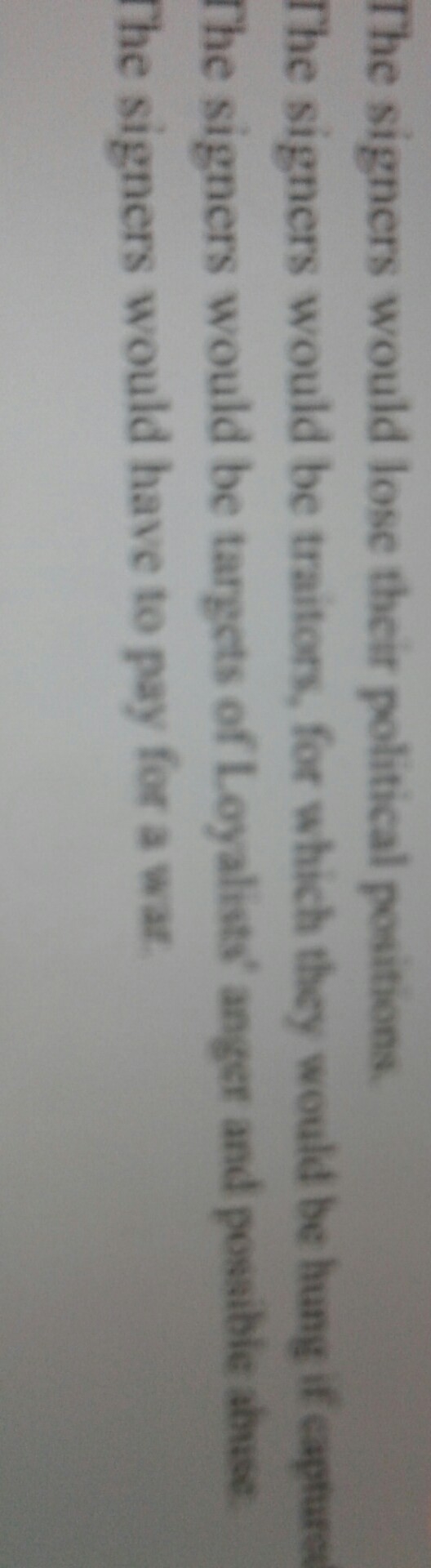 The answer is, the signers would be considered traitors to the Queen and if captured, executed swiftly and mercilessly.