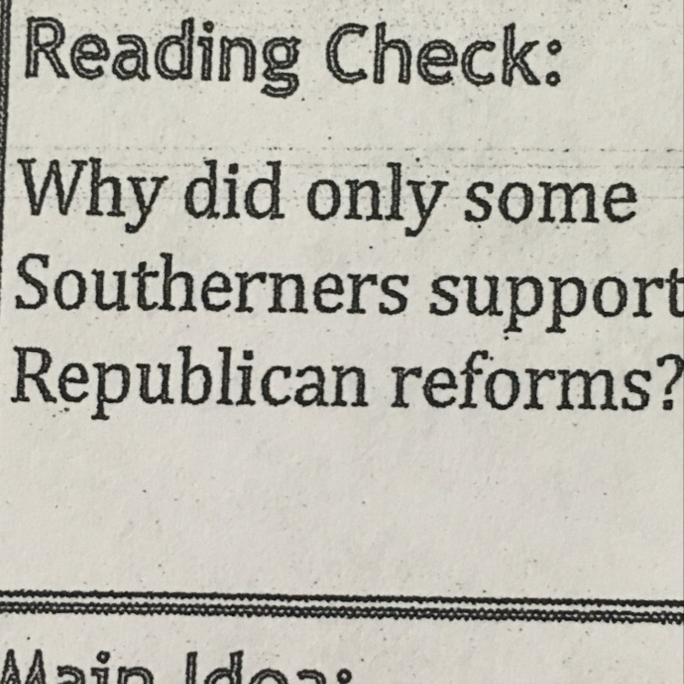 After the end of the Civil war, the Republican party was left unchallenged in its authority over the country. It then started the process of Reconstruction of the South. This was faced by vehement opposition from the majority in the South that had supported the Confederate course. Those that supported these reforms were those that had been marginalized in the slavery system in the South. Others that supported the reforms projected to benefit from economic opportunities created by carpetbaggers looking to assert their authority in the south.