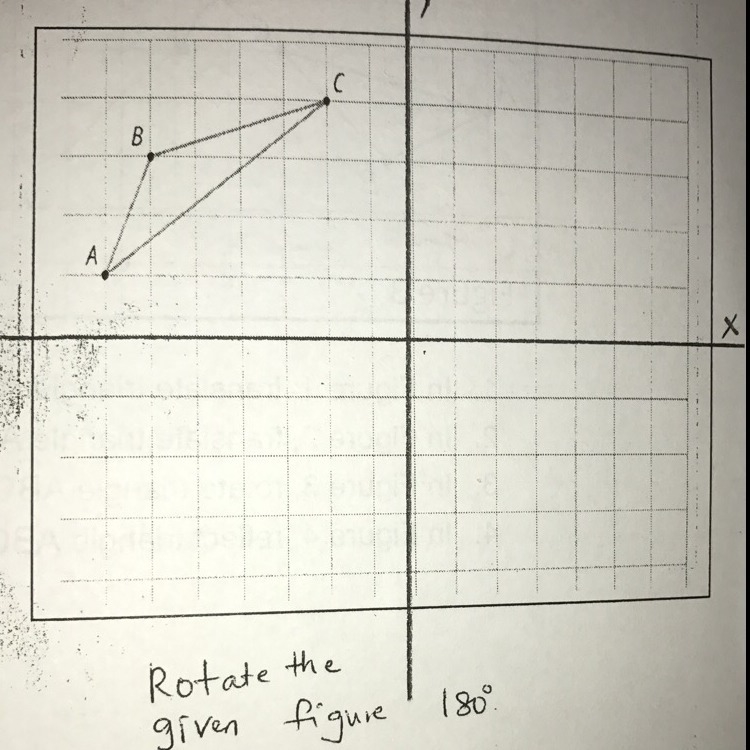 To rotate a point 180 degrees, you simply multiply both the x and y value by -1. For example, for A (-7, 1) we can rotate it 180 degrees to get (-7*-1, 1*-1)=(7, -1)