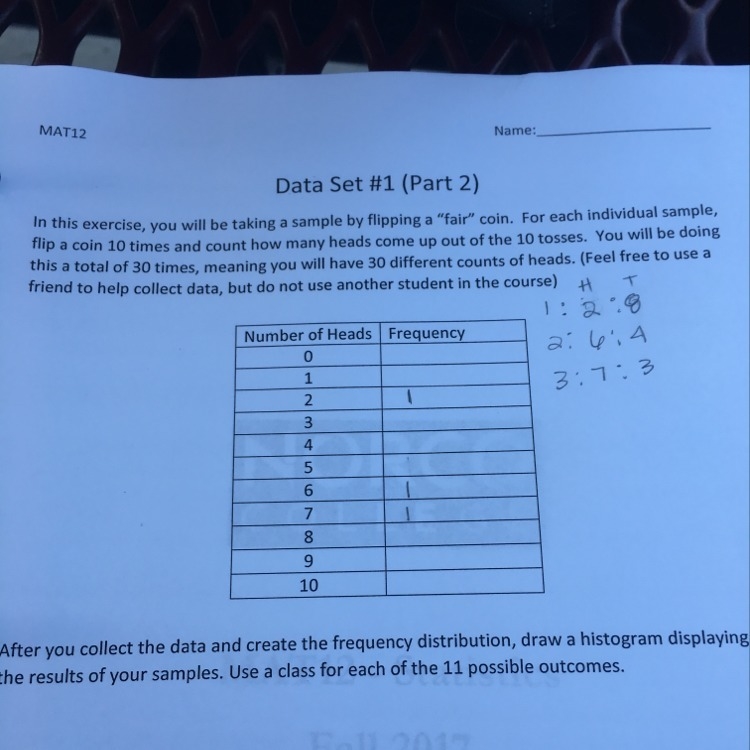 I'm not sure how to do the top part , so far I flipped a sample of ten coins three times