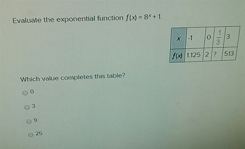 for x = 1/3, f(x) = 8^(¹/³) + 1 → f(x) = ∛8 + 1→ f(x) = 2+1→ and f(x) = 3