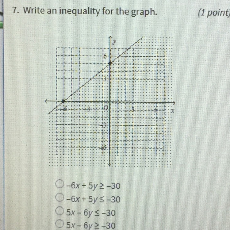 To write the inequality for the given graph we need to pick two points from the graph to frame the equation of the line.