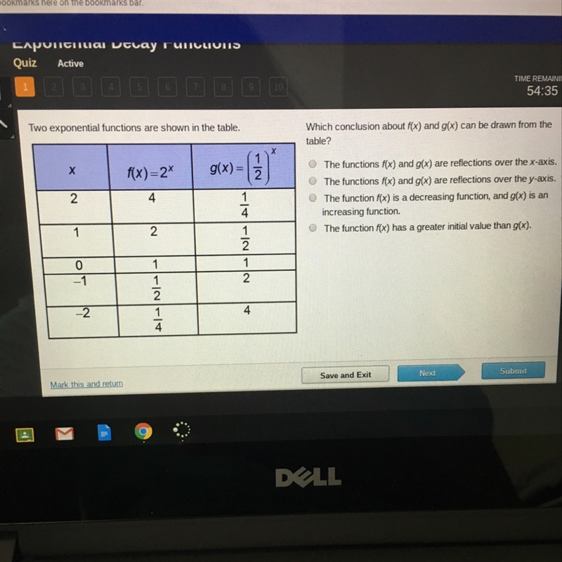 Moreover, f(-x) = 2⁻ˣ = (1/2)ˣ = g(x) so that proves it.