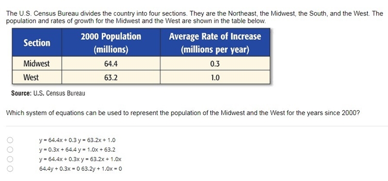 In this problem, x represents the number of years since 2000, so x = 0 represents the year 2000.
