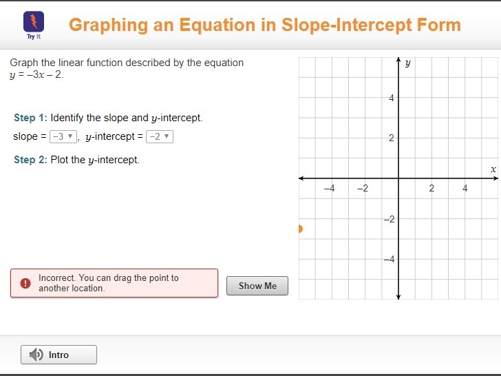 The point on the y intercept is at -2 on the vertical (y) axis)