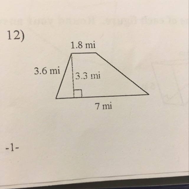 Now, we use the area formula. The side length of the bottom base is 1.4 + 7 = 8.4.