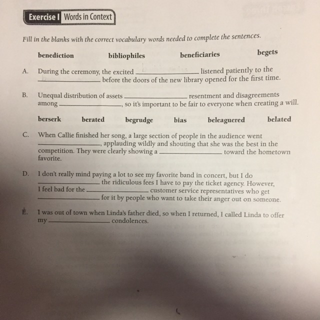 I think A is beneficiaries and benediction.
