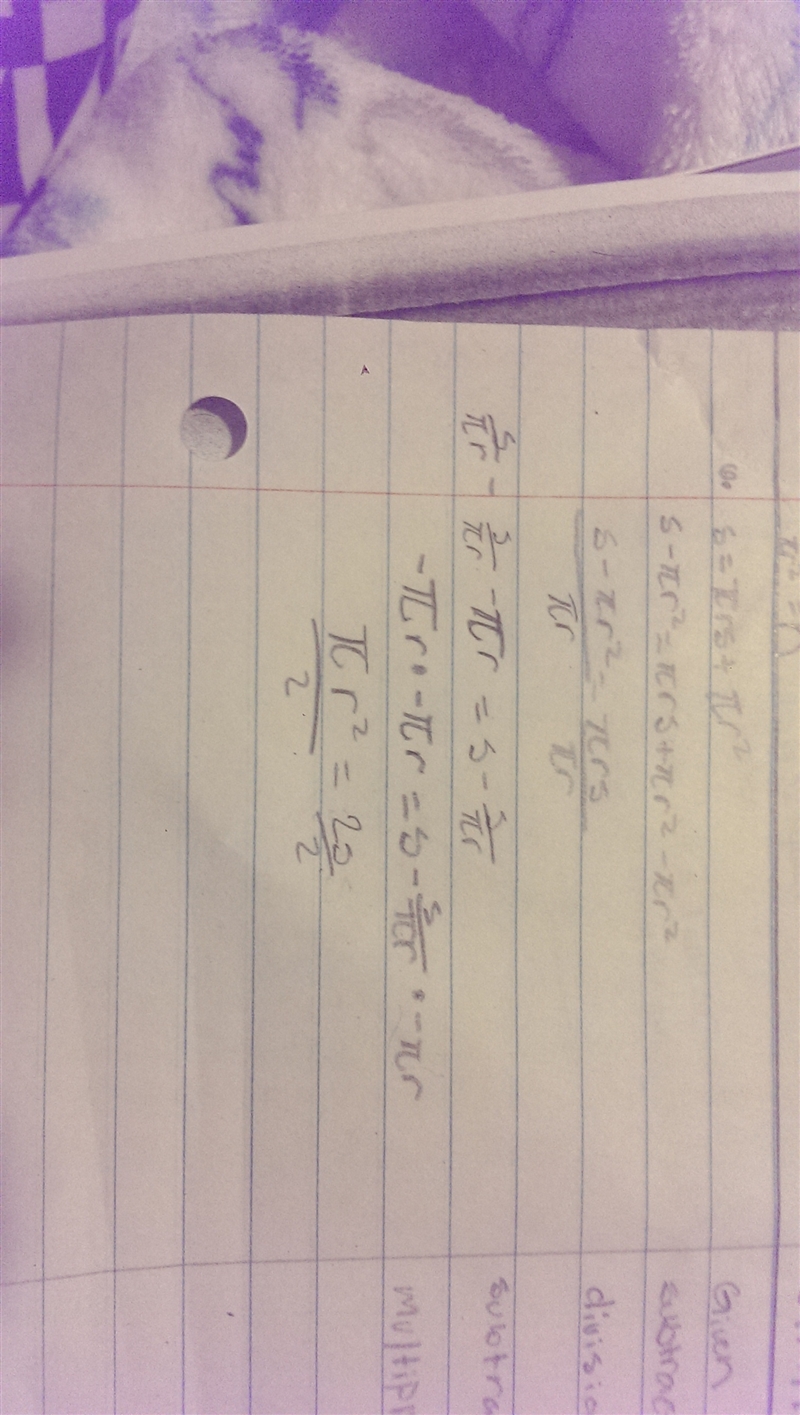 What is the answer to this math question... It says that it is Pi * r squared/ 2. Does it simplify to just Pi *r ...or does it not simplify.