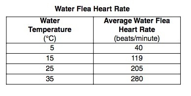 Here, in the given experiment the water temperature is the independent variable whose effect can be observed on the dependent variable that is the average water flea heart rate.