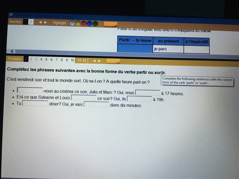 .................sortent ce soir ? oui, ils partent à 19 h.