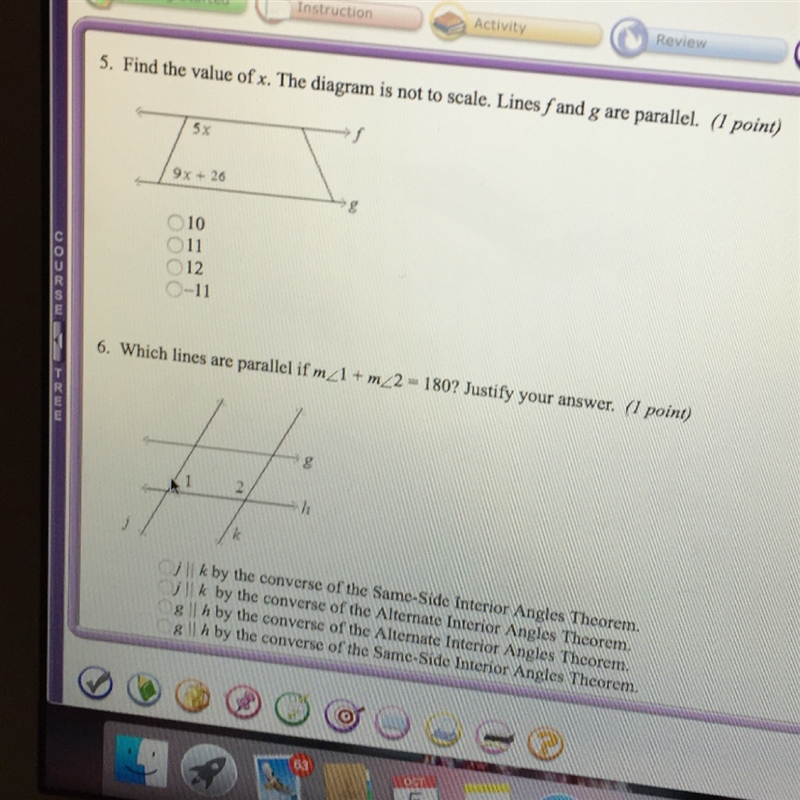 For the second question, the answer is the second bubble as well, because alternate interior means opposite sides, and not directly up and down (if that made sense). It is j || k and not g || h, because the two angles are on line h only, and in order for that to be g || h, one of the angles had to be on line g as well. Which makes j || k, qualified.