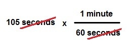 With conversion fractions, the denominator unit is always what you want to cancel out. In this case, we want to cancel out "seconds" because we want to effectively replace "seconds" with "minutes" (which is what conversions are really). The numerator is the unit we want to convert to. Take care to note that sometimes you'll need multiple conversions, and sometimes it's not going to involve one conversion fraction only.