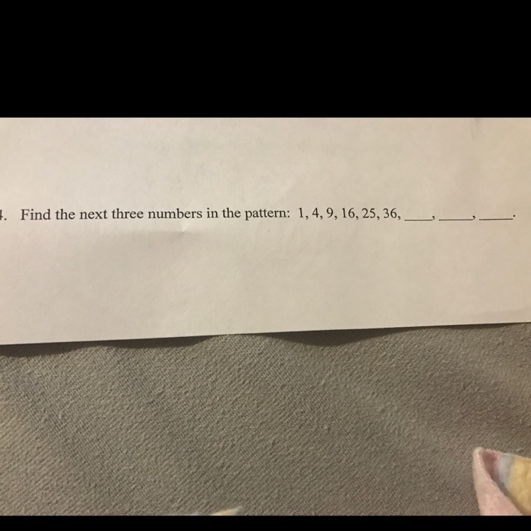 Thus, the next three terms in the pattern are 49, 64, and 81.