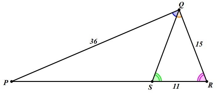 QP/QR = SP/SR → 36/15 =SP/11 ; SP = (11x36)/15 = 26.4