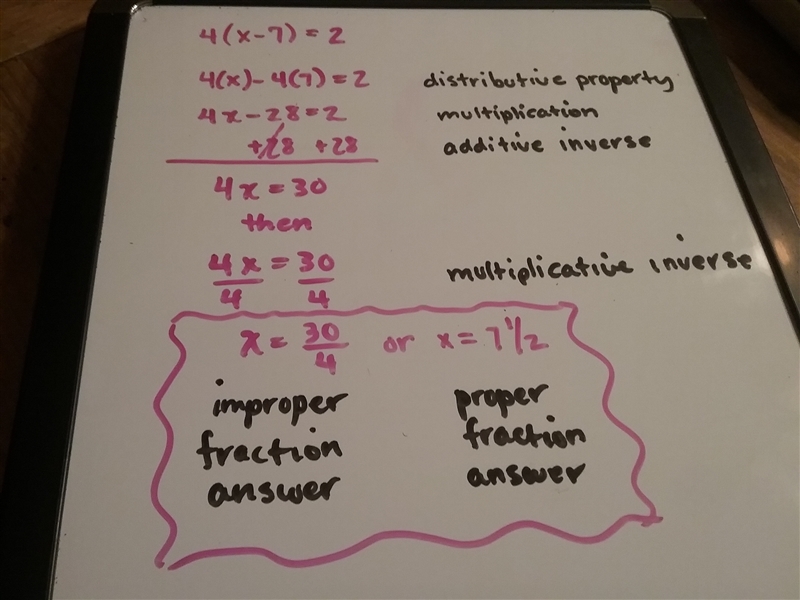 Can solve this equation step by step four parentheses x minus seven parentheses equal to two also it's multi step equation