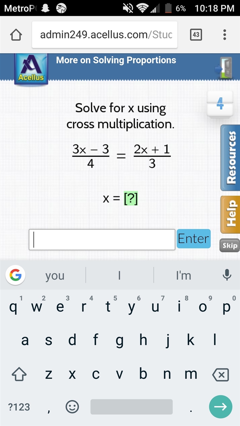 (3x-3)/4=(2x+1)/3 CROSS MULTIPLY
