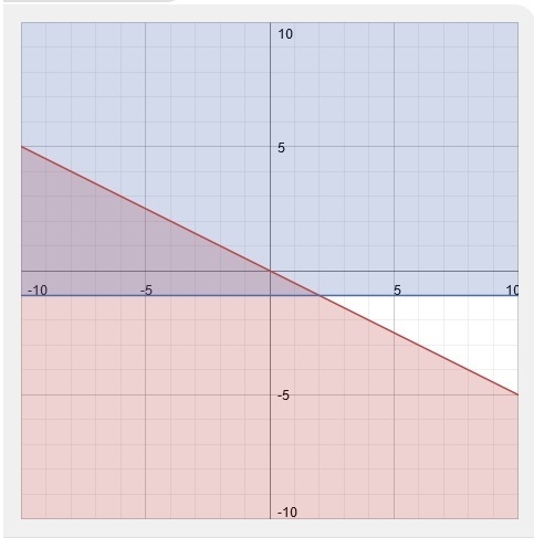 Please HELP FAST Which system of inequalities is represented by the graph? A. y ≤ –1/2x y > –1 B. y ≥ –1/2x y < –1 C. y < –1/2x y ≥ –1 D. y > –1/2x y ≤ –1