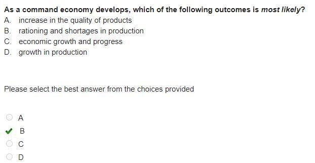 As a command economy develops, which of the following outcomes is most likely?