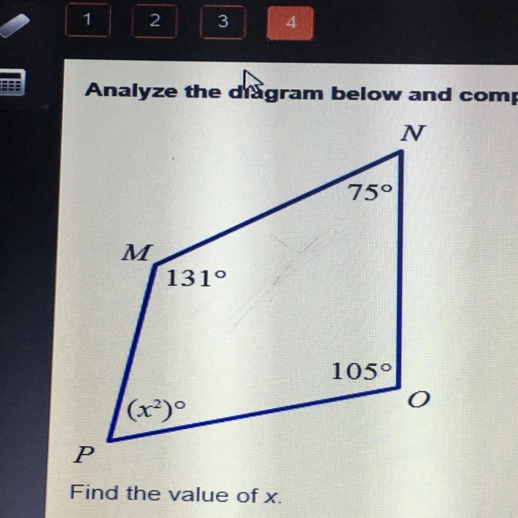 x^2 = 360 - (131+105+75)