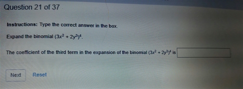 The coefficient of the 3rd term: C(4,2)(3^2)(2^2) = 6 x 9 x 4 = 216