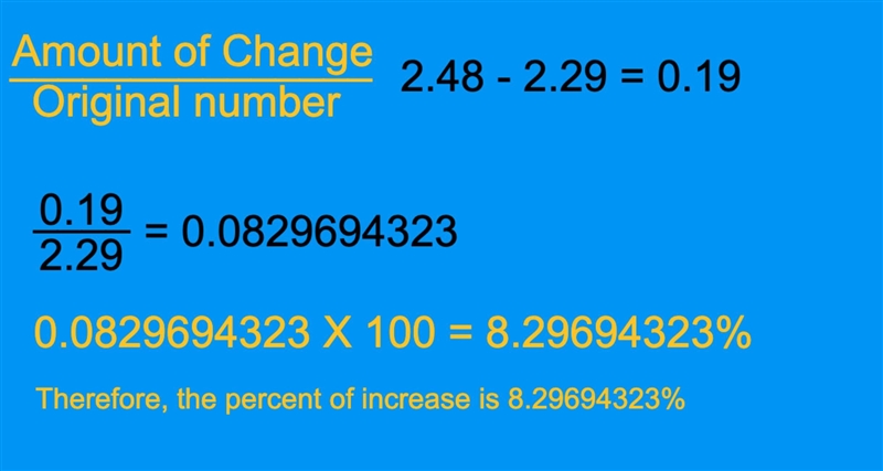 If the cost of a pound of nails increased from $2.29 to $2.48. what is the percent of the increase to the whole number percent?