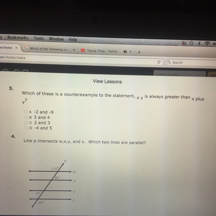 lines w and y are parallel. simply find the measures of each angle and use theorems to find your answer
