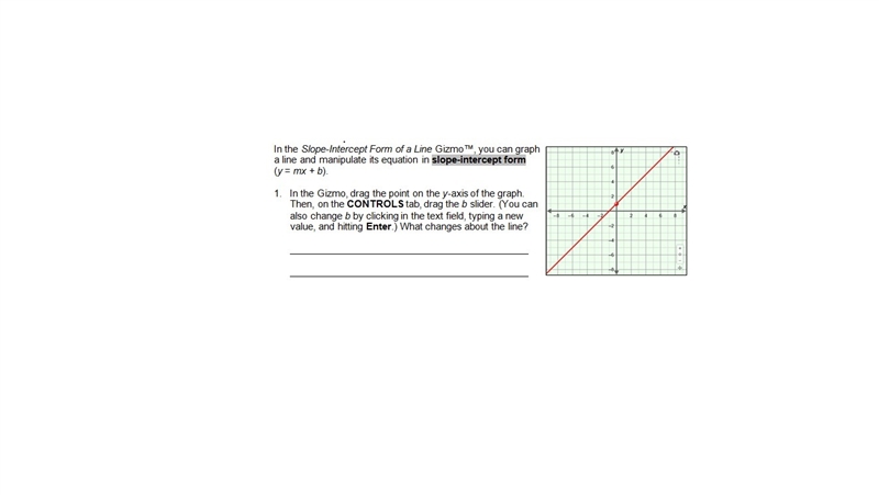 The point (0,1) gives you the y-intercept, b: When x = 0, y = 1. Thus,