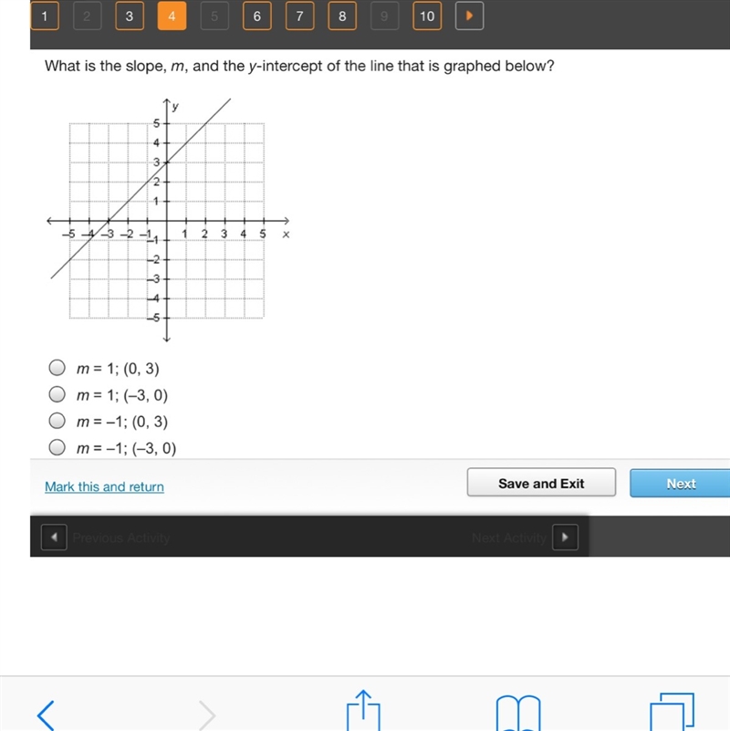 Thus, the slope, m = 1 and the y-intercept is (0, 3).