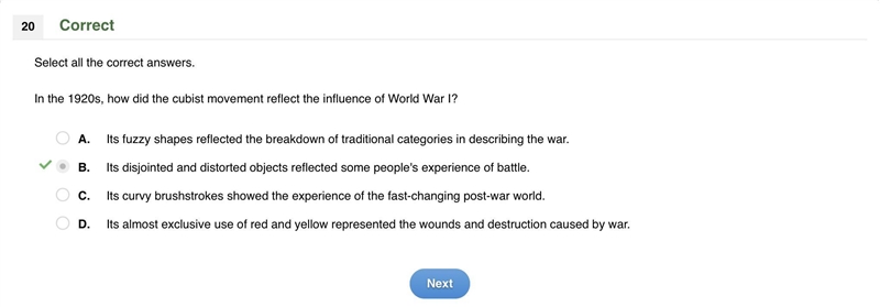 Answer: It’s disjointed and distorted objects reflected some people’s experiences of battle. Have a great day <3!