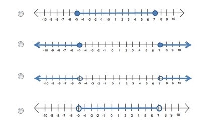 1.all real numbers that are less than -3 or greater than or equal to 5 A.x < -3 or x≥5 B.x < 5 or x ≥-3 C.x ≤ -3 or x >5 D.x ≤-3 or x ≤ 5 2.The time a cake must bake is between 25 minutes and 30 minutes, inclusive. A.25 < x < 30 B.25 ≤ x ≤ 30 C.25 ≤x ≥ 30 D.25 < x > 30 3. Solve. 5 < x -2 <11 A.5 < x < 11 B.7 < x < 13 C.7 < x < 11 D.5 < x < 16 4. Which graph shows the solution of 9 - c < 2 or -3c > 15?