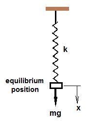 When the spring is stretched by x from the equilibrium position, the restoring force is