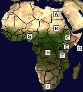 ON THE MAP ABOVE COUNTRY A IS EGPYT ETHIOPIA SUDAN LIBYA MARK BRANLIEIST