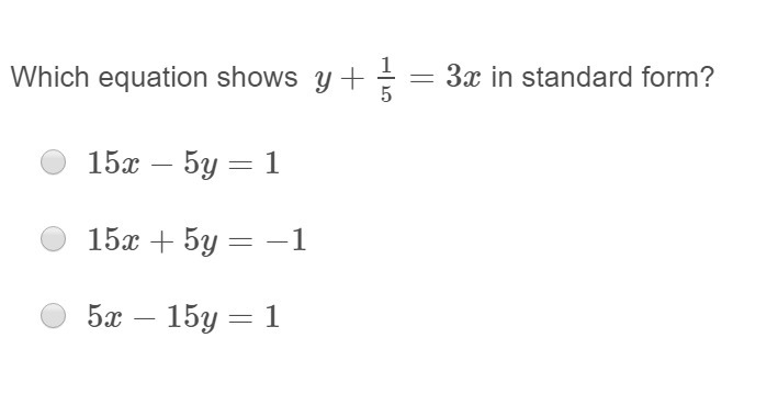 I believe the correct answer is 15x + 5y =-1 but im not positive cause i did the problem and got -1 but the equation i got looks different i got the equation -15x + 5y = -1