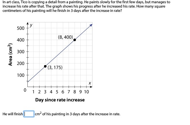 After 3 days at this rate, he'll have 175 cm^2 completed.