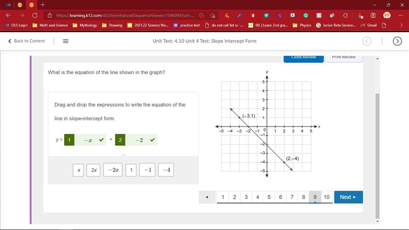 Look on the line for x=0 to find y-intercept, y-intercept is -2