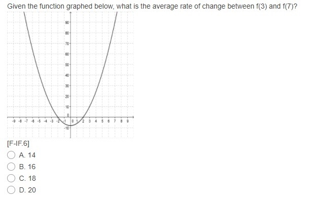 We need to find the slope of the line through the two points (3,10) and (7,90). The average rate of change from x = 3 to x = 7 is the same as the slope of the line through those two points.