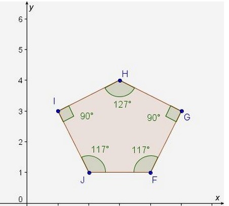 Polygon ABCDE rotates 45° clockwise about point F to produce polygon FGHIJ as shown. What is mABC? A.90 B. 117 OR C.127