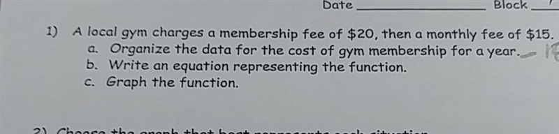 Let's call x the number of months you have a membership, and y the total cost of the membership.