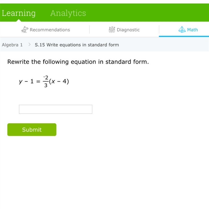 Standard form for a linear equation (highest degree is 1), is Ax+By=C;