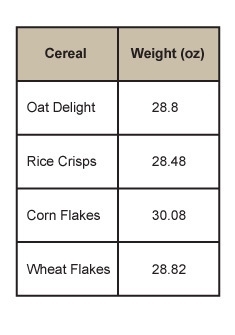 Which list shows the boxes of cereal ordered from greatest to least weight?