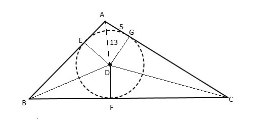 Draw a circle inside the triangle ABC centered at D. Since the sides DE,DF and DG are perpendicular to AB,BC and CD respectively, therefore the lines DE,DF and DG are radius of the circle.