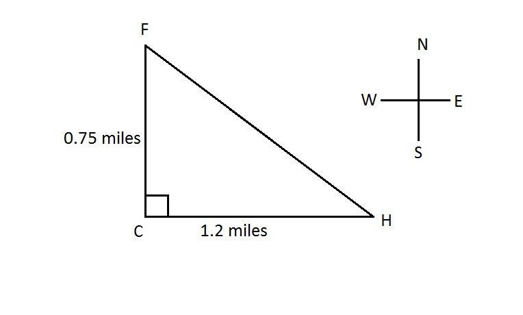 Let F represents his starting point, C represents his position from where he went to east direction and H represents his position from where he went to left towards Florida Avenue.