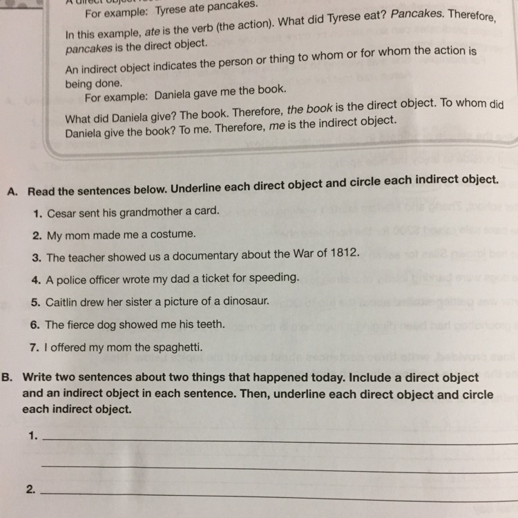 A. Underline each direct object and circle each indirect object. B.read the instructions and plzzzz answer