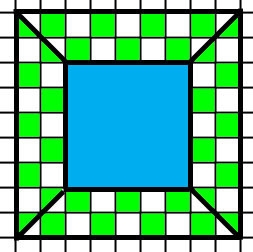 Jon wants to build a border around his jacuzzi with tiles. Each block is a square foot . He will use half green and half white tiles that are one foot by one foot. What is the area in sq ft. of the entire area that needs covered
