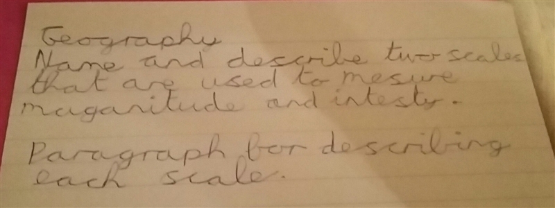 Magnitude and Intensity measure different characteristics of earthquakes. Magnitudemeasures the energy released at the source of the earthquake. Magnitude is determined from measurements on seismographs. Intensity measures the strength of shaking produced by the earthquake at a certain location.
