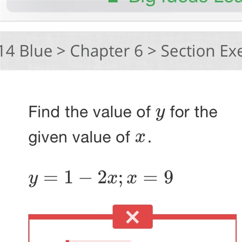 To find the value of y for the given value of x, just replace the x in the equation with 9, which is the given value of x.